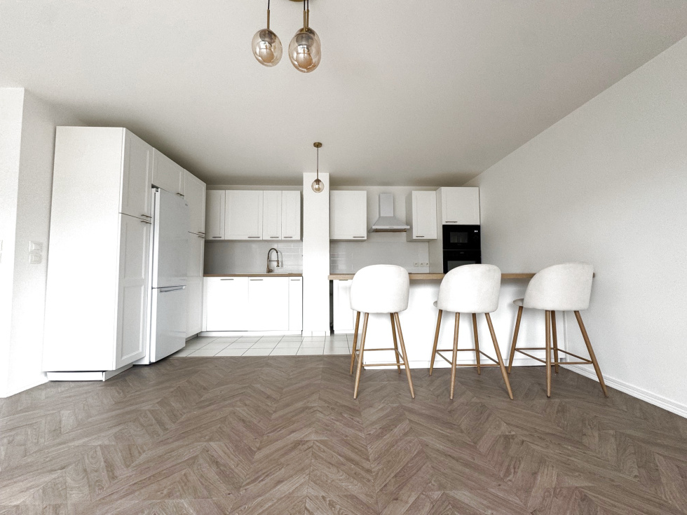 POSEZ VOS MEUBLES . Dans Résidence de standing, superbe appartement de 3 pièces de 66.49 m² habitable avec grand balcon de 15.70 m² situé au premier étage avec ascenseur comprenant entrée avec placard, séjour salle à manger avec cuisine contemporaine ouverte et équipée, 2 chambres, salle de bains et WC. 1 place de parking extérieur sécurisé et un garage au sous sol complètent ce bien. Proche de toutes les commodités: commerces , écoles, RER D, autoroute A1. Les honoraires sont à la charge du vendeur. Les informations sur les risques auxquels ce bien est exposé sont disponibles sur le site Géorisques : www.géorisques.gouv.fr
