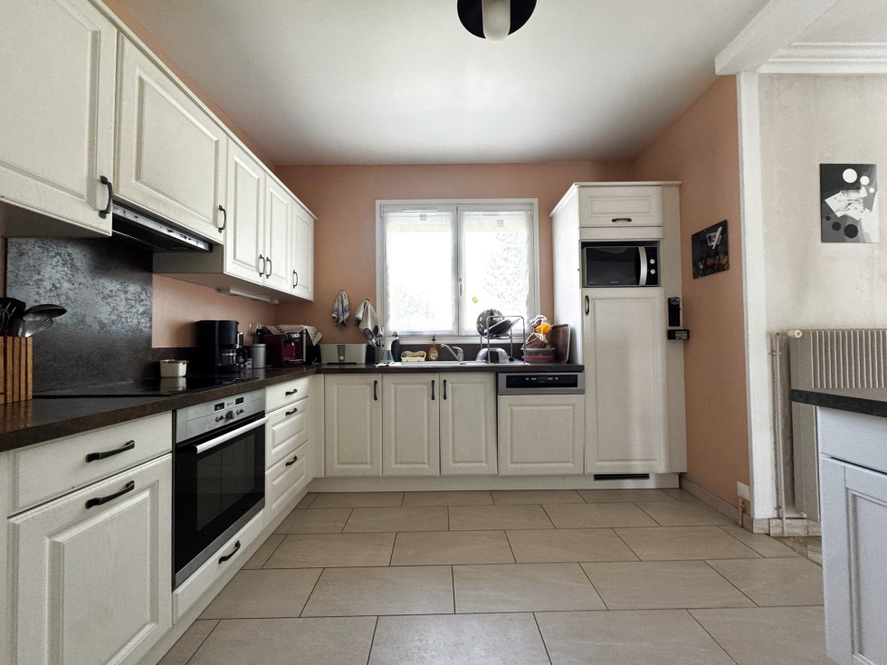 Belle maison individuelle de 8 pièces de 220 m² habitable élévée sur sous sol total et 1271 m² de terrain comprenant entrée, séjour salle à manger avec cheminée insert, cuisine ouverte équipée, 3 chambres, salle de bains, wc. A l'étage: pièce palière, 3 chambres dont une suite avec espace bureau et salle d'eau avec wc, salle de bains avec wc. Vaste sous sol total avec espace chaufferie, buanderie, cave à vin, rangement, garage 2 voitures, salle de jeux ou sport. Abri bois.Nombreuses places de parking exterieur. 540 000€ Honoraires TTC inclus à la charge de l'acquéreur: 4.00% du prix du bien hors honoraires. Prix du bien hors honoraires: 519 230€. les informations sur les risques auxquels ce bien est exposé sont disponibles sur le site Géorisques : www.géorisques.gouv.fr