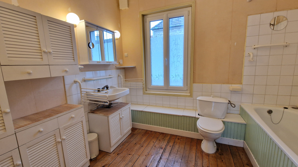 Charmante maison de ville avec jardin en centre ville.Découvrez cette belle maison de ville, offrant un cadre de vie chaleureux et fonctionnel. Dès l’entrée, vous serez séduit par une salle à manger, une cuisine conviviale et un séjour lumineux ouvrant directement sur un agréable jardin avec terrasse, parfait pour vos moments de détente en extérieur. Un cellier, un dégagement et des WC complètent ce niveau pour un confort optimal.À l’étage, une grande chambre vous attend, accompagnée d’une salle de bain avec WC et espace lingerie, idéale pour faciliter votre quotidien. Le deuxième étage propose deux chambres supplémentaires, un bureau parfait pour le télétravail ou les études, ainsi qu’un dégagement offrant de multiples possibilités d’aménagement. Un grenier aménageable complète ce bien.La maison dispose également d’une cave partielle, idéale pour le stockage. Son exposition est-ouest vous garantit une belle luminosité tout au long de la journée.Un bien rare à visiter sans tarder, alliant charme, espace et praticité en cœur de ville ! Les informations sur les risques auxquels ce bien est exposé sont disponibles sur le site Géorisques : www.georisque.gouv.fr.